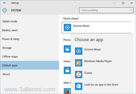 - بعد ذلك سوف تجد مشغل الموسيقى الافتراضى الخاص بالنظام و يمكنك تغير الى المشغل الخاص بك الذى تريده و ايضا اذا كنت تريد مشغل الفيديو سوف تجد ايضا و يمكنك تغير بنفس الطريقه