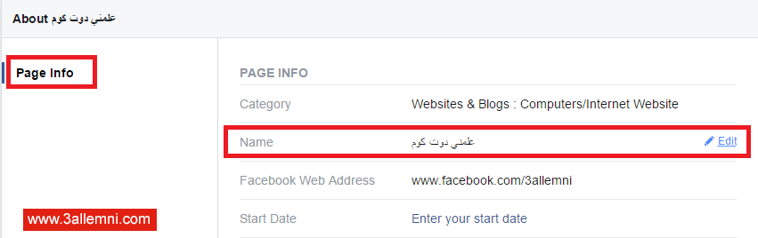 • بعد ذلك قم بفتح تبويب Page Info ثم في خانة Name اضغط علي Edit.