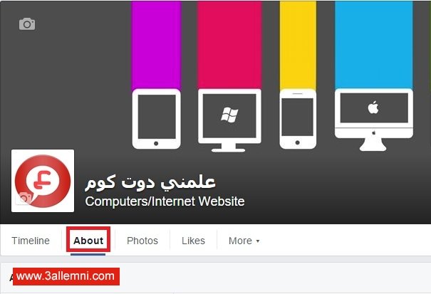 • قم بفتح تبويب About في الصفحه التي تريد تغيير اسمها.