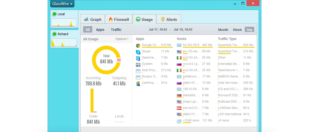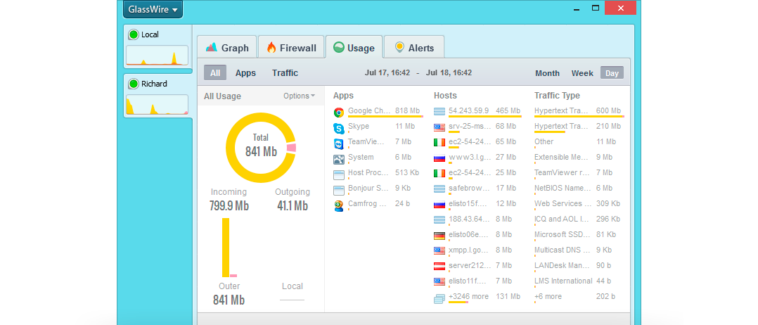 برنامج GlassWire يقوم بتتبع الشبكه وعدد المتصلين بيها واعطاء نتائج دقيقه عما يحدث داخل شبكتك ويوجد العديد من المميزات الاخري في النسخه المدفوعه من البرنامج.