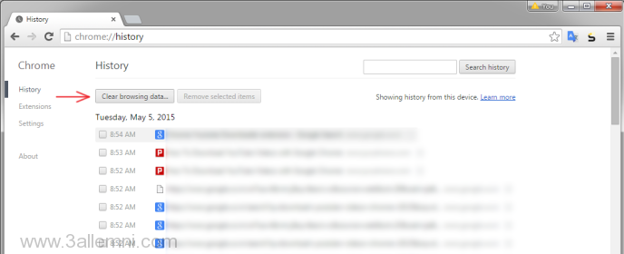 • الخطوه الثانيه : اضغط على “Clear Browsing History” لكى تقوم بمسح كل الهيستورى الخاصه بمتصفح جوجل كروم