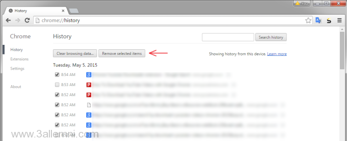 يمكن ايضا حذف الهيستورى بشكل يدوى عن طريق الدخول الى المتصفح و اختيار “History” او الضغط على CTRL+H و سوف تفتح لك نافذه تقوم باختيار المواقع التى تريد حذف فقط