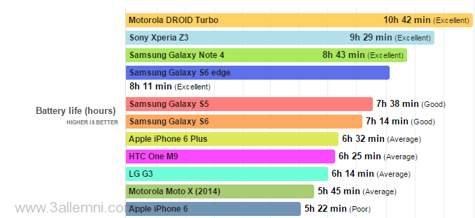 هاتف ايفون 6 (العادي) استمر لمدة 5 ساعات و 22 دقيقه في تصفح المواقع