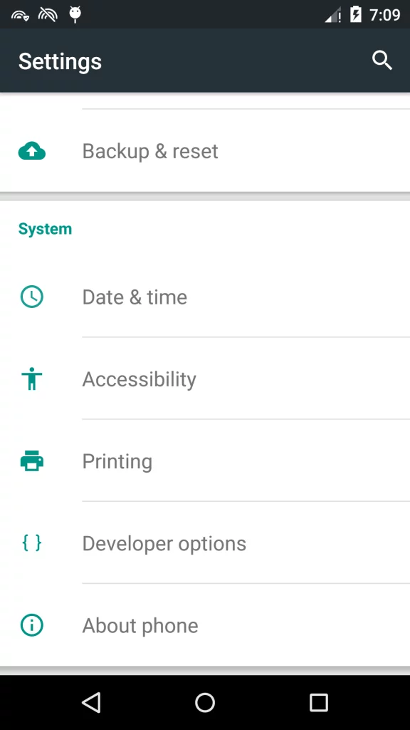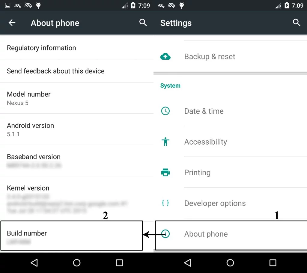 2- فتح Developer Option ,و هذا من خلال الضغط على Settings ثُمّ About Phone ثُمّ تضغط على خيار Build Number العديد من المرات “7”.