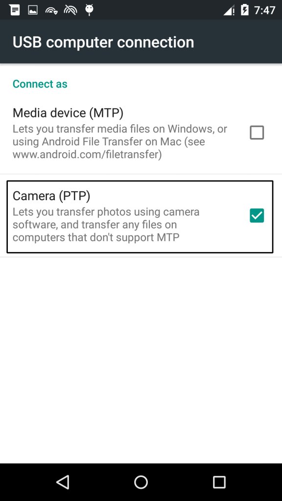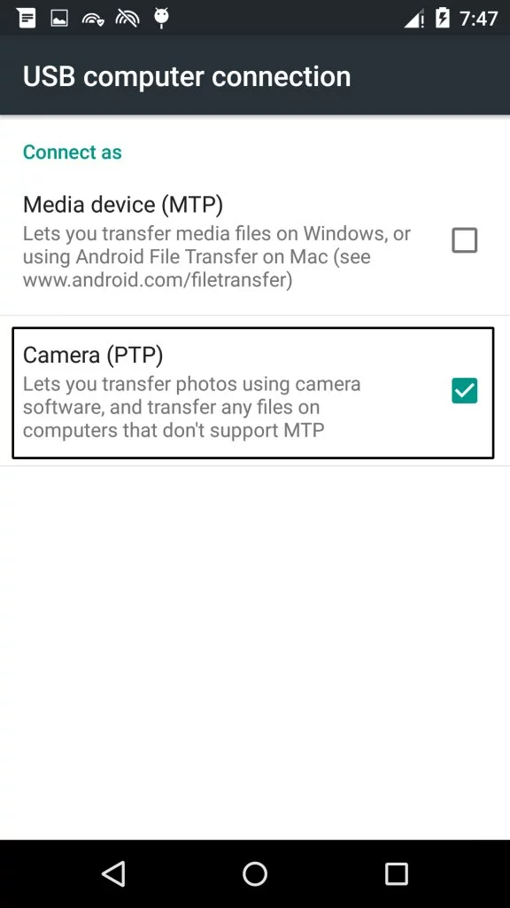 7- نقوم بفتح USB Computer Connection ,و نقوم بإختيار Camera (PTP)a.
