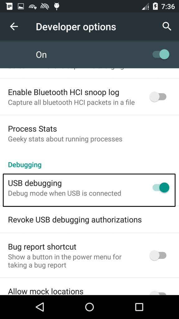 3- نذهب إلى Developer Option و نُفعّل خيار USB Debugging.