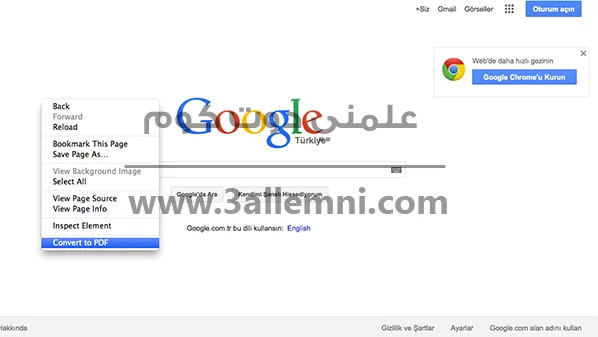 بعدما تقوم بتثبيت اداه Web2PDF التى تعمل على تحويل المواقع الى ملف PDF فى متصفح فايرفوكس تقوم بالضغط على زر الماوس الايمن داخل الصفحه التى تريد ان تقوم بتحويلها ثم تقوم باختيار Convert to pdf .