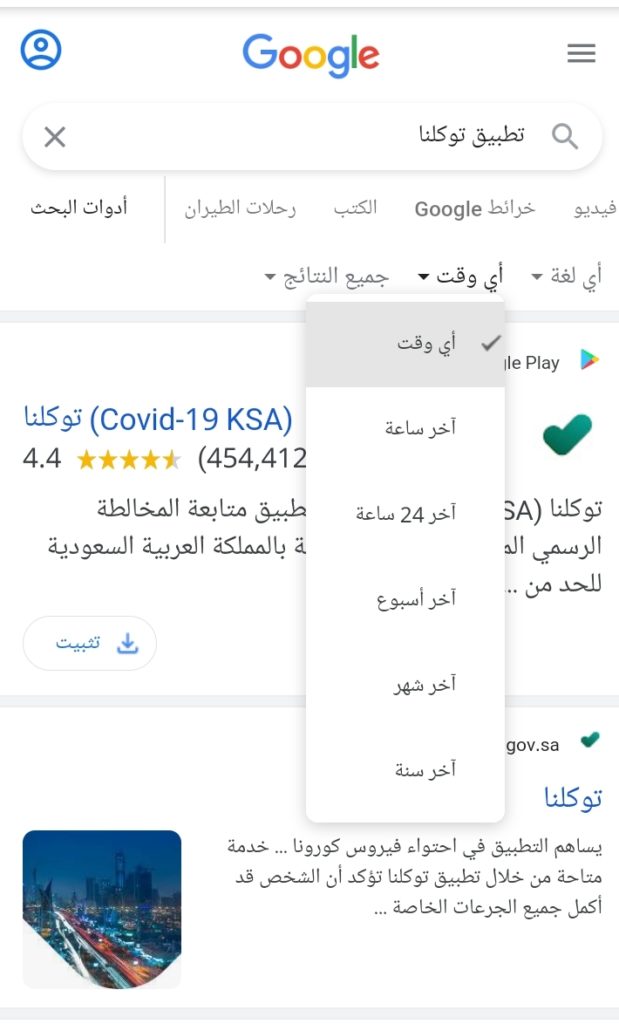يستطيع جوجل البحث على اغلب المواقع المتوافرة الى شبكة الانترنت، ويعود لك بما يجده، احرص على اختيار افضل الكلمات للبحث، وإذا كان التطبيق تم إطلاقه منذ مدة معينة فقم بتعديل إعدادات البحث في جوجل إلى هذه المدة، وءلك بالضغط على كلمة أدوات البحث ثم أي وقت، واختيار منذ أسبوع أو شهر أو سنة، يمكنك أيضًا اختيار البحث في لغة معينة، عن طريق الضغط على كلمة أي لغة وتحديد اللغة المطلوبة، تساهم هذه التعديلات في تسهيل الوصول إلى نتائج دقيقة.