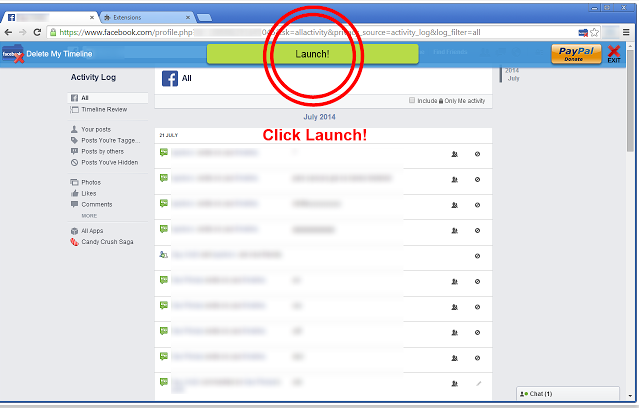 • قم بالضغط علي Launch وانتظر حتى تنتهي الاضافه من حذف جميع المنشورات