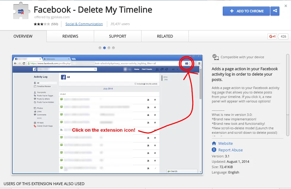 • قم بتحميل اضافة Delete My Timeline  علي متصفح جوجل كروم