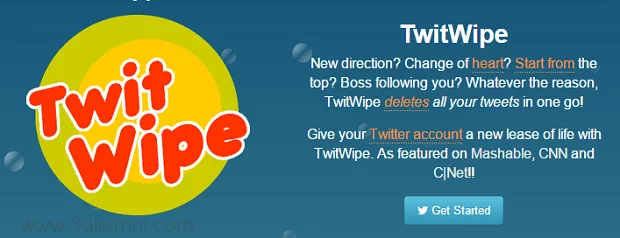بعض الاشخاص يريدون حذف جميع التغريدات ” التويتات ” الخاصه بهم في تويتر اما لانهم يريدون البدأ من جديد او لان التغريدات القديمه محرجه الي حدِ ما ، ولكن موقع TwitWipe يمكنك من حذف كل تلك التغريدات بطريقه سهله جدا وبدون تدخل منك.