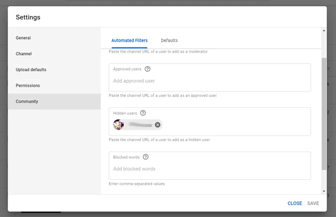 توجه الى يوتيوب ستوديو ثم الى Settings ثم الى Community و استخدام خاصية فلترة التعليقات و يمكنك استخدام الصلاحيات في حظر كلمات معينة أو حظر أشخاص محددين أو الموافقة على أشخاص محددين فقط .