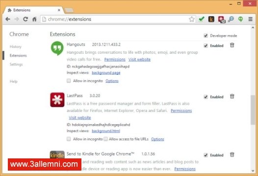 ثم قم بفتح متصفح جوجل كروم وادخل الي المسار التالي