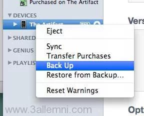 نستطيع عمل نسخه احتياطيه من البيانات و الملفات عن طريق توصيل الجهاز بالبرنامج حيث تقوم من البرنامج بضغط على الزر الايمن للماوس و اختيار Back Up مثل الموضح بالصوره التاليه
