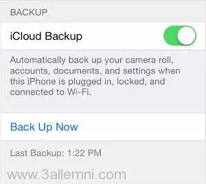 يمكنك عمل نسخه احتياطيه من الملفات البيانات عبر الاى كلاود “Icloud” عن طريق الذهاب الى Settings بعد ذلك Icloud ثم Storge&Back Up ثم الضغط على Back Up Now لكى يبدأ النسخ .