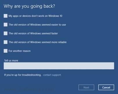 - بعد ذلك سوف تطلب منك مايكروسوفت اعطاء سبب لرجوعك الى النظام السابق لكى يعالجوا ذلك فيما بعد فى التحديثات اذا كان السبب مشكله شائعه بين المستخدمين