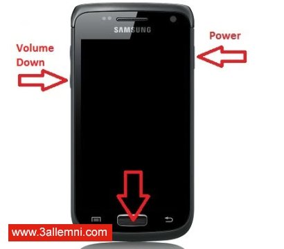 - خول الى وضع التحميل “Download Mode” و يمكنك ذلك عن طريق الضغط على (زر خفض الصوت + زر الـ Home + زر الـ Power) معا فى وقت واحد