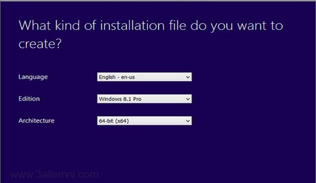 الاداه يمكنك من خلالها اختيار لغة الويندوز و نوع النسخه و معماريتها هل هي 64 بت ام 32 بت