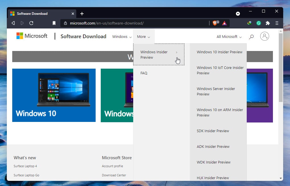 - في الشريط الاعلى اضغط على More ثم اختر Windows insider preview .