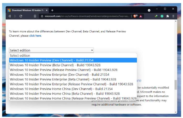 - اضغط على Windows 11 insider Preview و قم بالتمرير لأسفل إلى نهاية الصفحة و اختر إصدار ويندوز Download Windows 11 Insider Preview .