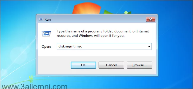 اولا يتوجب عليك تخصيص مساحه صغيره من الهارد ديسك و ذلك عن طريق اختيار زر الويندوز المتواجد جنب الـ Alt + حرف الـ R او من قائمه Start و من ثم الضغط على Run و بعد ذلك كتابه الامر “diskmgmt.msc” و نضغط على Ok