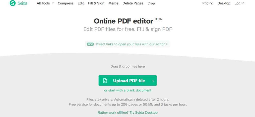 يعتبر من المواقع الرائعه التي تساعدك في تعديل ملفات PDF للكمبيوتر و الاندرويد و الايفون فهو يساعدك في تحرير نص موجود في ال pdf دون اضافة علامه مائية و يتيح لك رفع الملف او تنزيل Sejda نسخة سطح المكتب لاستخدمها بعيدا عن المتصفح .