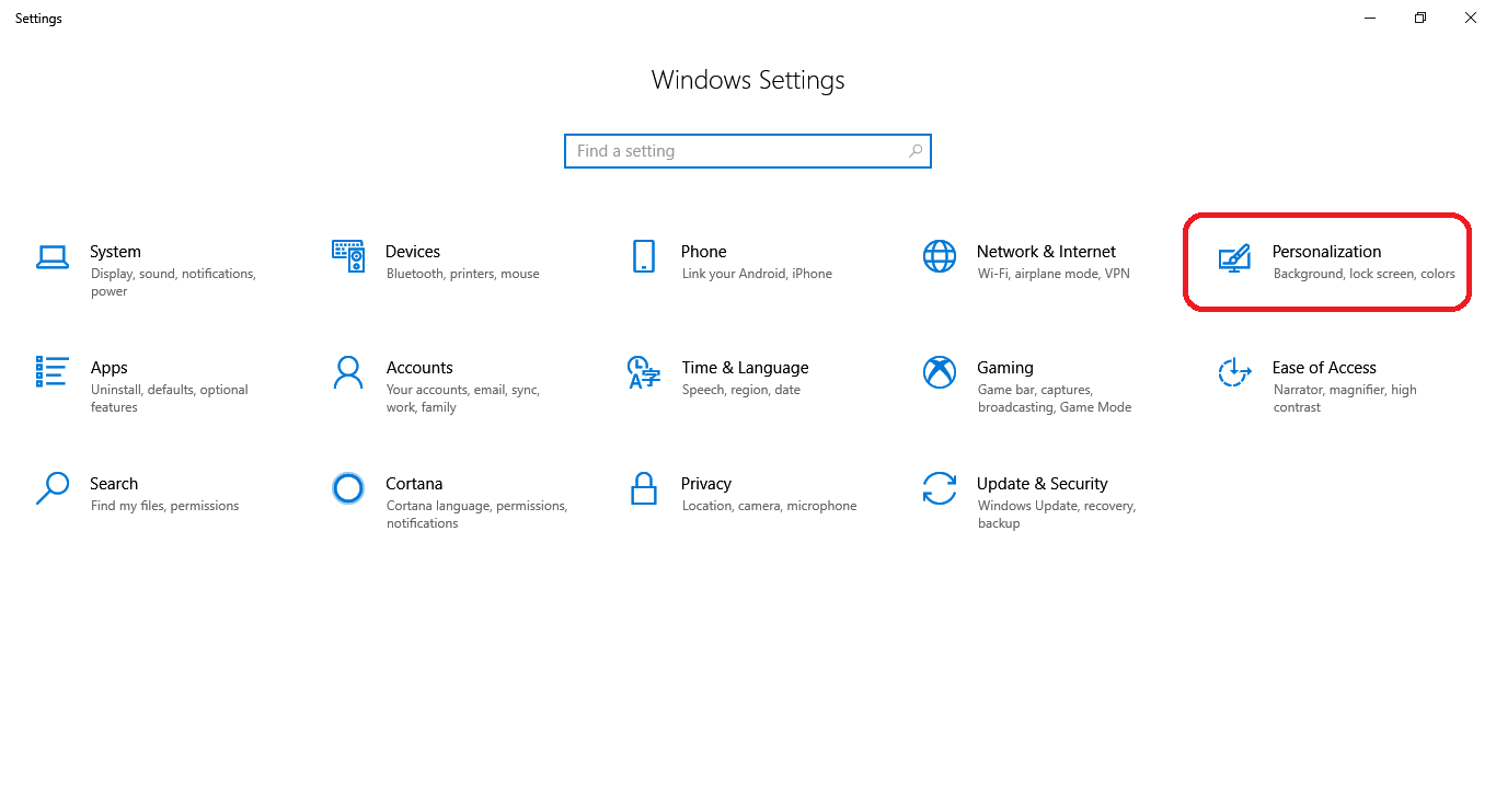 قم بإختيار إعدادات أو قائمة التخصيص Personalization من قائمة الإعدادات Settings.