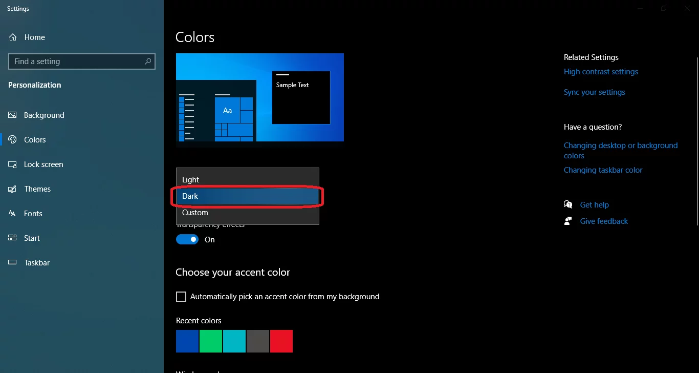 تخصيص الوضع المظلم Dark Mode في نظام ويندوز 10