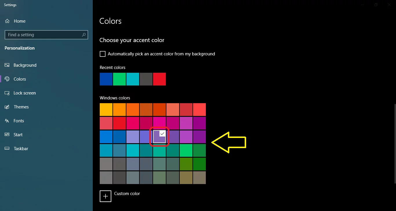 عليك الإختيار من باين هذه الألوان المتاحة أمامك حسب تفضيلاتك الشخصية، وبإمكانك أيضاً تعيينها تتغير تلقائياً حسب الصور المعروضة على واجهة سطح المكتب Desktop.
