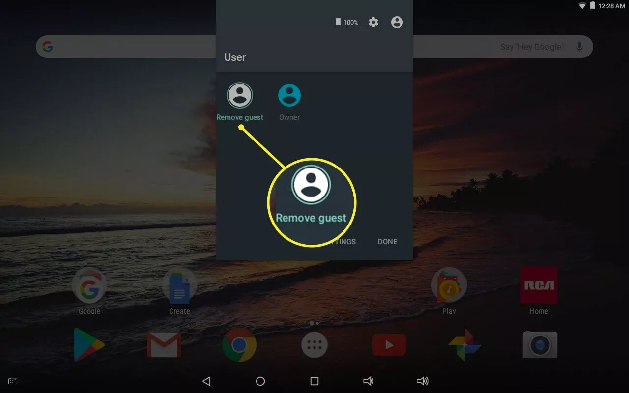 إذا أردت الخروج من وضع الضيف على هاتفك الأندرويد فيمكنك القيام بذلك بكل سهولة وذلك من خلال سحب شريط الإشعارات من الأعلى مرة أخرى، ثم قم بالنقر على “المالك” أو “إزالة الضيف”.