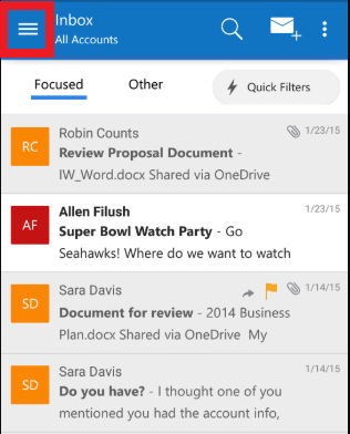 - قم بتشغيل مايكروسوفت outlook على هاتف الاندرويد الخاص بك .