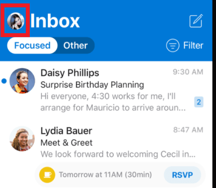 - قم بفتح تطبيق مايكروسوفت Outlook على جهاز ايفون أو ايباد .