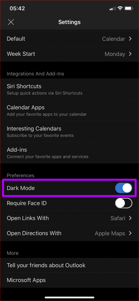 كيفية تفعيل الوضع الليلي لمايكروسوفت Outlook على أيفون
