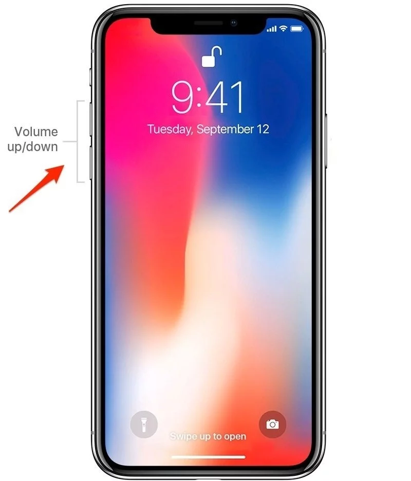 - قم بالضغط على زر رفع الصوت ثم قم بتركه.