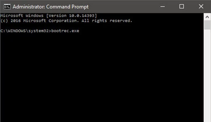 و اذا المشكلة لم يتحم حلها بعض فعليك ان تستخدم bootrec.exe التي سوف تعثر عليها في ويندوز 10 , حيث ان هذه الاداة تعمل علي فحص بيانات الBoot Configuration Data وانها تعيد ترتيبها مرة ثانية . لحل المشكلة و ازالة الخطأ .