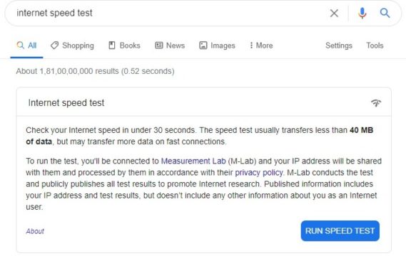 • افتح علامة تبويب جديدة على المتصفح “new tab” واكتب Internet Speed Test واضغط على Enter.