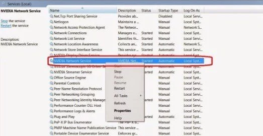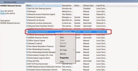 • الخطوه السابقه ستقوم بفتح نافذه جديده علي شاشتك ثم عليك اختيار NVIDIA Network Service من الخيارات المتاحه.