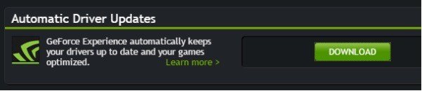 • اذهب للمتصفح وقم بزياره www.geforce.com/drivers , واختر الخيار الاول المتاح Automatic Driver Updates.