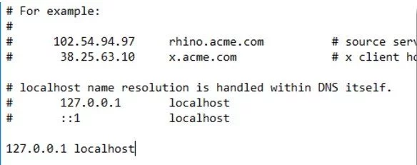 • انشأ نسخه احتياطيه من النص المتاح قبل التعديل فيه. قم بتغيير “0.0.0.0” الي “127.0.0.1” او احذف x.x.x.x” localhost“.