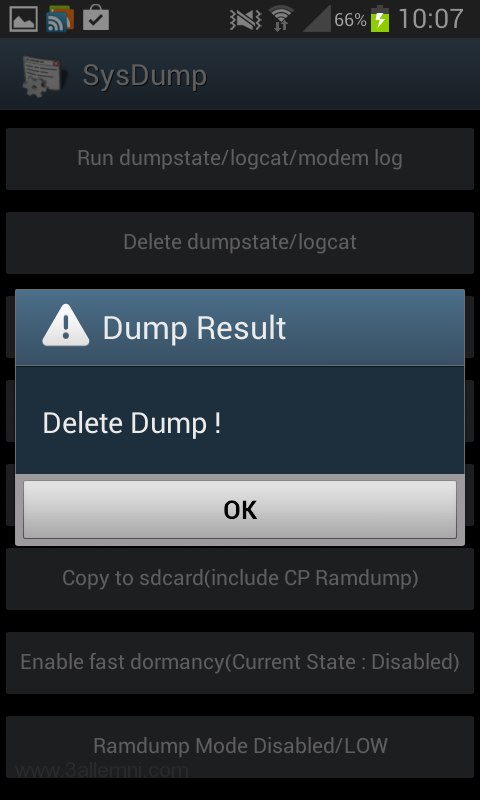 • قم بالضغط علي ثاني خيار Delete dumpstate/logcat ولا تقم بالضغط علي اي خيار اخر