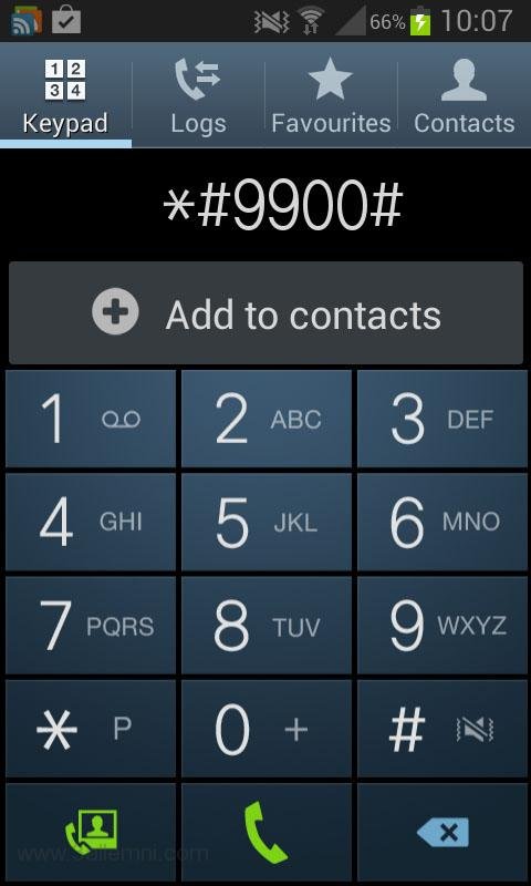 • قم بفتح لوحة الاتصال وقم بكتابة الرمز التالي *#9900# ” نجمة شباك تسعه تسعه زيرو زيرو شباك “