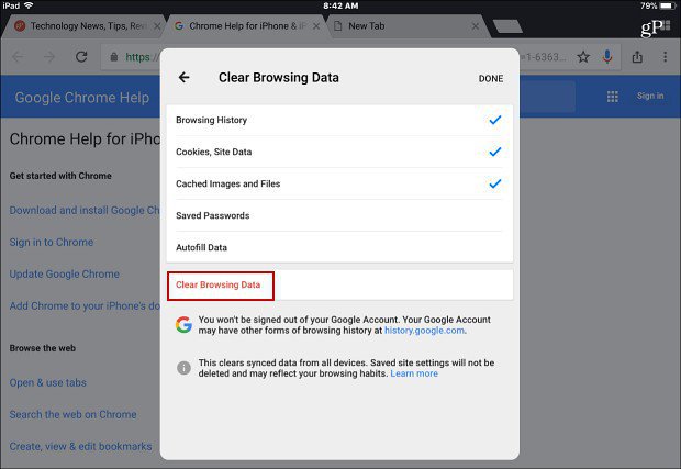 على سبيل المثال، في متصفح كروم عند فتح التطبيق يمكنك الذهاب إلى الإعدادات Settings ومن ثم إلى الحماية Privacy ومن ثم إلى Clear Browsing Data أي مسح تاريخ البيانات قم بإختيارها لمسح الملفات التي تم إلتقاطها مثل الصور وبعض الملفات.