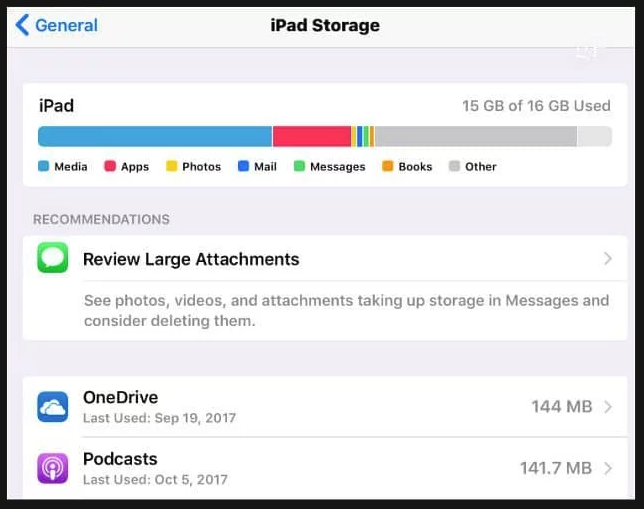 عندما تقوم بتنظيف مساحة التخزين الخاصه بجهازك تكون قد إمتلأت، قم بمسح تخزين ال “Other” ربما تكون إملتئت، ولكن إن لم تكن كذلك أو لم تلاحظ أي شئ، يمكنك البحث عن خيار أخر مع تطبيق iTunes الخاص بالأغاني.