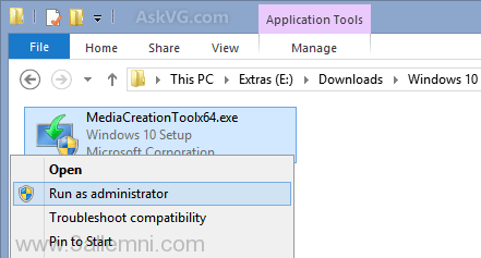 - تشغيل اداه “Windows Media Creation” كمسؤول عن النظام اى تقوم بتشغيلها عن طريق “Run as Adminstrator”