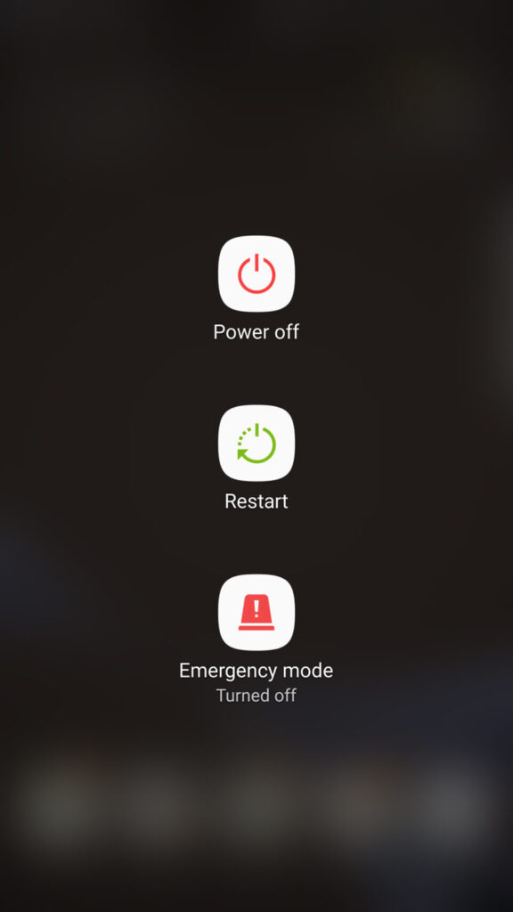 حسنا ، لنبدا بالحل التقليدي و المعتاد لاغلب مشاكلنا مع الاجهزة التكنولوجيه و هو اعادة التشغيل فقد يحدث احيانا وجود خطأ في بعض البيانات و تنتظم مع اعادة التشغيل و قد يحدث نفس الامر مع جهازك الاندرويد و ذلك من خلال الضغط مطولا على زر الباور الجانبي و اختر اعادة التشغيل “Restart” .