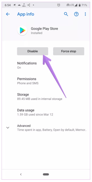 اذا كانت مشكلة تحديث التطبيقات لازالت مستمرة بعد تجربة الحلين السابقين فيمكنك الان تجربة تعطيل المتجر “Disable Google Play” و تمكينه مره اخرى و قد يساعد ذلك كثيرا في التخلص و حل تلك المشكله .