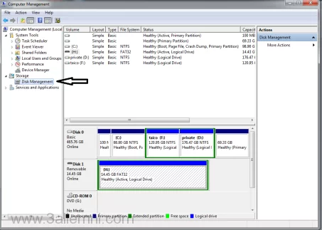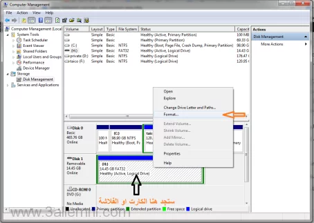 بعد ذلك تقوم بأختيار Disk Management من تلك القائمه
