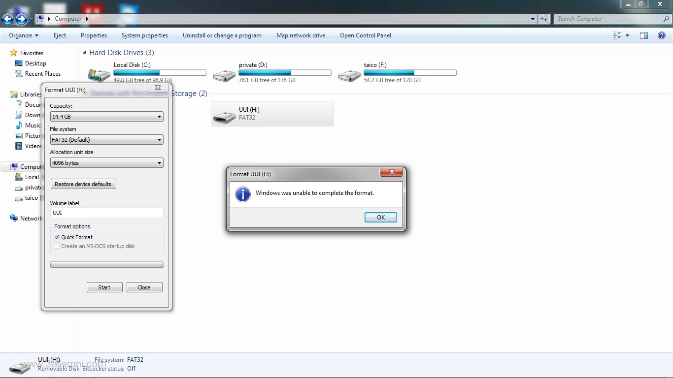 اليوم سوف نتكلم عن مشكلة تواجه الكتير و هى عدم القدرة علي عمل فورمات لكارت الميموري او الفلاشة في بعض الاحيان عند محاولة عمل فورمات لكارت الميموري او الفلاشة يعطيك ويندوز هذا الخطأ windows unable to complete the format