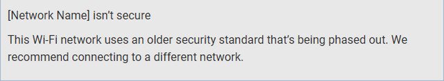 كيفية حل مشكلة شبكة الواي فاي غير آمنة في ويندوز 10 ، في بداية تحديثك للويندوز الجديد ١٠ مايو ٢٠١٩ فإنه قد يقوم بعرض رسالة توضح لك أن الشبكة الخاصة بك غير آمنة حتى وإن كان لك كلمة مرور خاصة بك يتم استخدامها وفي حالة ظهور هذه الرسالة ورؤيتها عليك إما أن تستخدم تشفير الخصوصية المكافئة السلوكية أو تستخدم بروتوكول تكامل المفاتيح المؤقتة، حيث تعد هذه الشفرات غير آمنة لاستخدامها وفي هذه الحالة عليك أن تقوم بالتبديل إلى أحدث بروتوكول أو قيامك باستبدال الموجه بسرعة.
