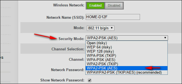 وحينها سوف تريد الحصول على عنوان IP  لجهاز الراوتر الخاص بك، وكذلك إدخاله في المتصفح الخاص بك، وبعدها قم بالبحث عن إعدادات الأمان للواي فاي وقم بمراقبة الأقسام حول WEP  أو كلمات المرور، وفي ذلك الوقت نوصيك أولاً باختيار WPA2+AES  في حال كانت متوفرة وفشلك في اختيار WPA+AES.